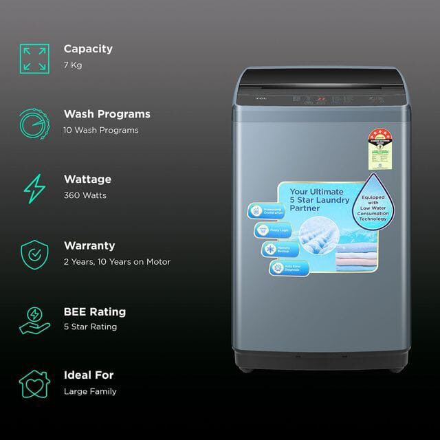 Be the first to review “TCL 7 kg 5 Star Fully Automatic Top Load Washing Machine (F103, F3070TLG, Water Blow Pulsator, Dark Grey)”